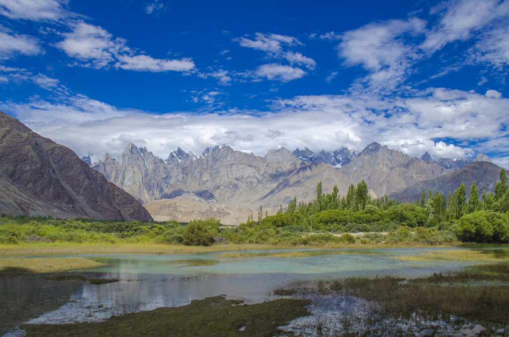 The tour starts with a visit to Skardu, the cultural as well as the tourist and commercial center of Baltistan. Located in the heart of the mountains and surrounded by glaciers and fast-flowing rivers, Skardu is surely a dreamer’s delight. Check out the glorious Shangrila Resort and the ancient Skardu Fort which is located on a hill that has a beautiful view of the valley underneath. There are a couple of places to visit like Satpara Lake, where you can take a nice walk along the shoreline of the blue water, or shop at bazaars that offer rich flavored locally crafted shawls and utensils, tools of the local people known as Balti.
